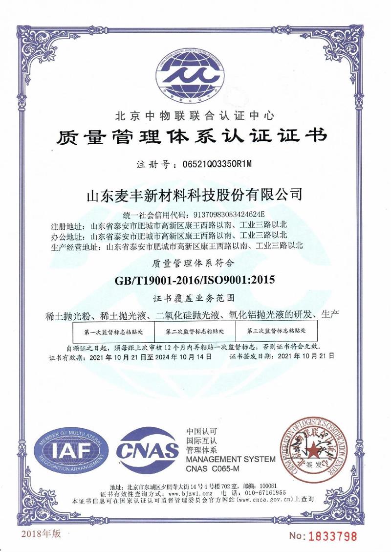 9001認證證書